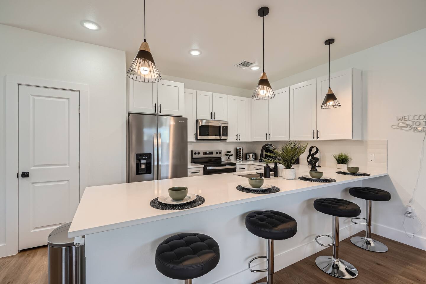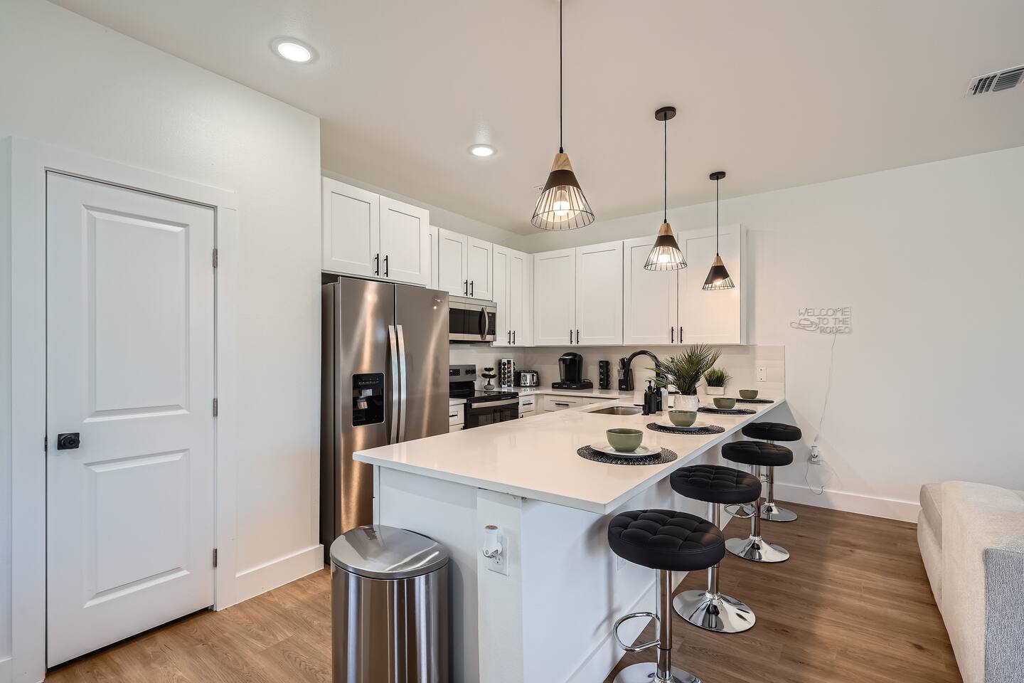 Check-in & Check-out Check-in: From 3 PM via a smart lock. You will receive the access code before arrival. Check-out: By 11 AM. Please ensure timely departure to allow our cleaners to prepare for the next guests. Pets We welcome up to two well-behaved pets, but they must be included in your booking. Please clean up after them and ensure they do not cause damage. Quiet Hours To respect our neighbors, quiet hours are from 10 PM to 8 AM. Security Camera For safety, a security camera monitors the entrance. Layout & Stairs This is a modern three-story home thoughtfully designed to offer privacy, space, and comfort across multiple levels. Please note that stairs are required to access the bedrooms and rooftop terrace. If you need anything, feel free to reach out!