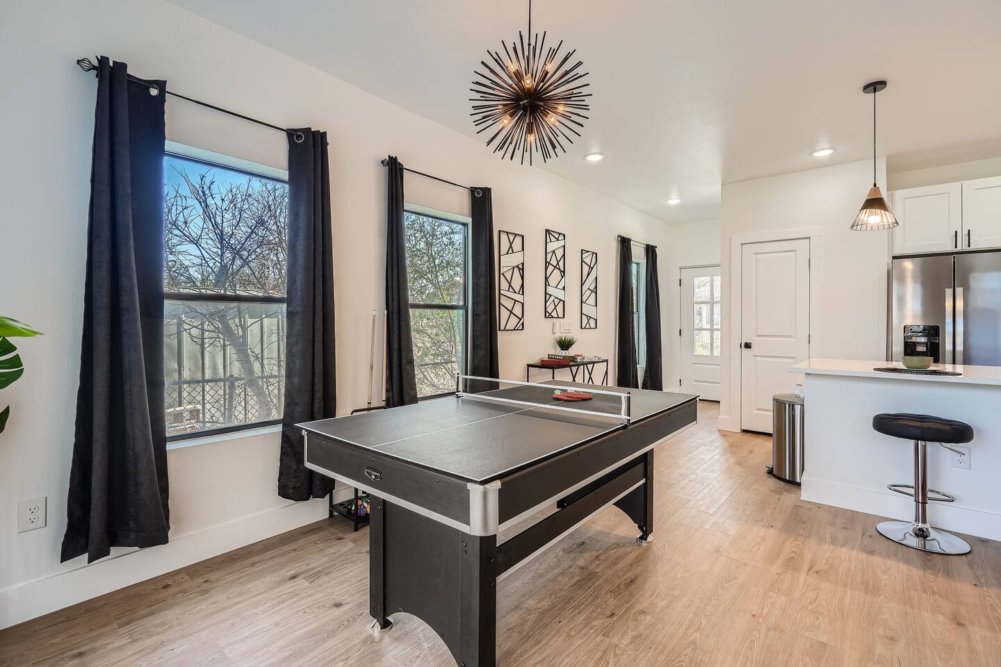 Thoughtfully designed for comfort and style, this 3-bedroom home features a stunning rooftop terrace—perfect for sunset lounging or sharing drinks under the stars. Inside, enjoy a spacious living area with a cozy sectional that guests have called “the most comfortable couch ever.” The fully stocked kitchen offers everything you need to cook and dine in, and each bedroom features a plush queen bed for restful sleep. Whether you’re enjoying a game on the pool table, ping-pong, coffee on the rooftop, or simply soaking in the peaceful atmosphere, everything here is curated for relaxation and connection. You'll also have private parking right at your door and a quiet setting just off the main road, making it easy to unwind while staying minutes from the action. 🧼 Spotless. Cozy. Memorable. Guests consistently rave about the cleanliness, thoughtful touches, and comfort. Many return again and again, saying this is their go-to spot in San Antonio. 📍 Prime Location – Minutes from the City’s Best! Tower of the Americas -- 5 mins Yanaguana Garden at Hemisfair – 6 mins Henry B. González Convention Center – 6 mins Southtown area - 6 mins La Villita Historic Village – 7 mins Rivercenter mall - 8 mins Frost Bank Center – 8 mins Riverwalk – 9 mins Downtown San Antonio – 9 mins The Alamo – 9 mins Hopscotch San Antonio – 9 mins Pearl District – 10 mins San Antonio Zoo – 10 mins Historic Market Square – 11 mins Brackenridge Park Golf Course – 11 mins San Pedro Creek Culture Park – 12 mins Witte Museum – 12 mins San Antonio International Airport – 12 mins SA Missions National Historical Park - 13 mins The Quarry Golf Course – 14 mins Six Flags Fiesta Texas - 22 mins ✨ With stylish design, top-tier amenities, and an unbeatable location, this home is ideal for families, groups, or business travelers. Whether you're here for work, a weekend getaway, or Fiesta events—book now and discover why guests say they'd “absolutely stay again.”